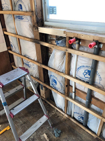 給湯のラインは既存の物を捨てて新しく引き直しました。