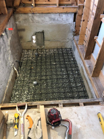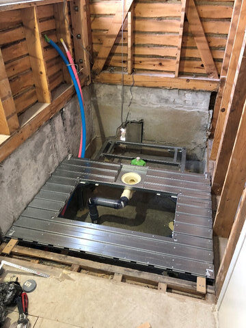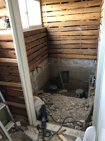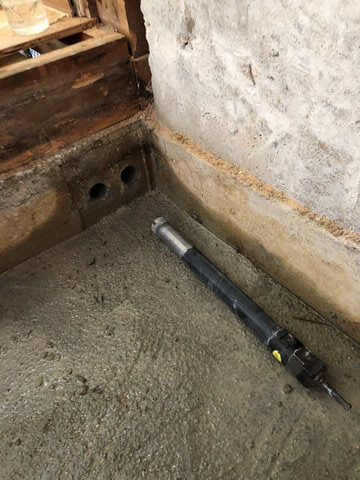 ユニットバスの下で給水の繋ぎ手を作りたくないのでホールソーで基礎に穴あけ